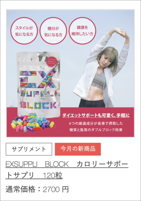 | EXSUPPLI BLOCK(カロリーサポートサプリ) | 取扱いなし | 1,980円 |